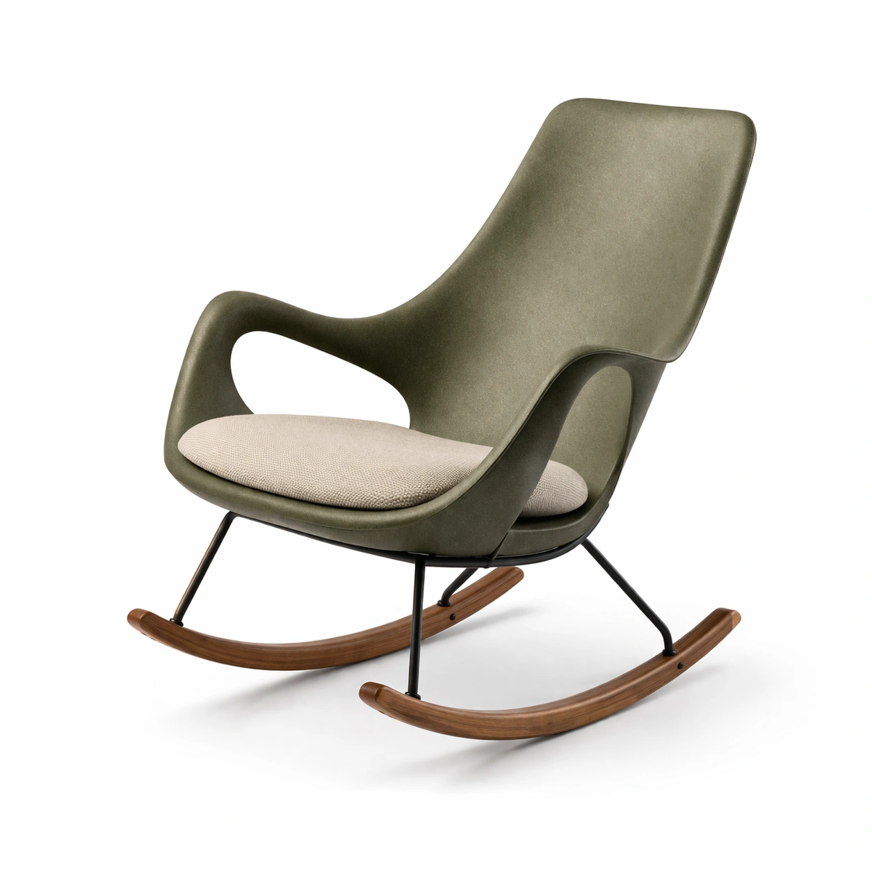 Schaukelstuhl kunststoff olivgrün kamel holzstruktur