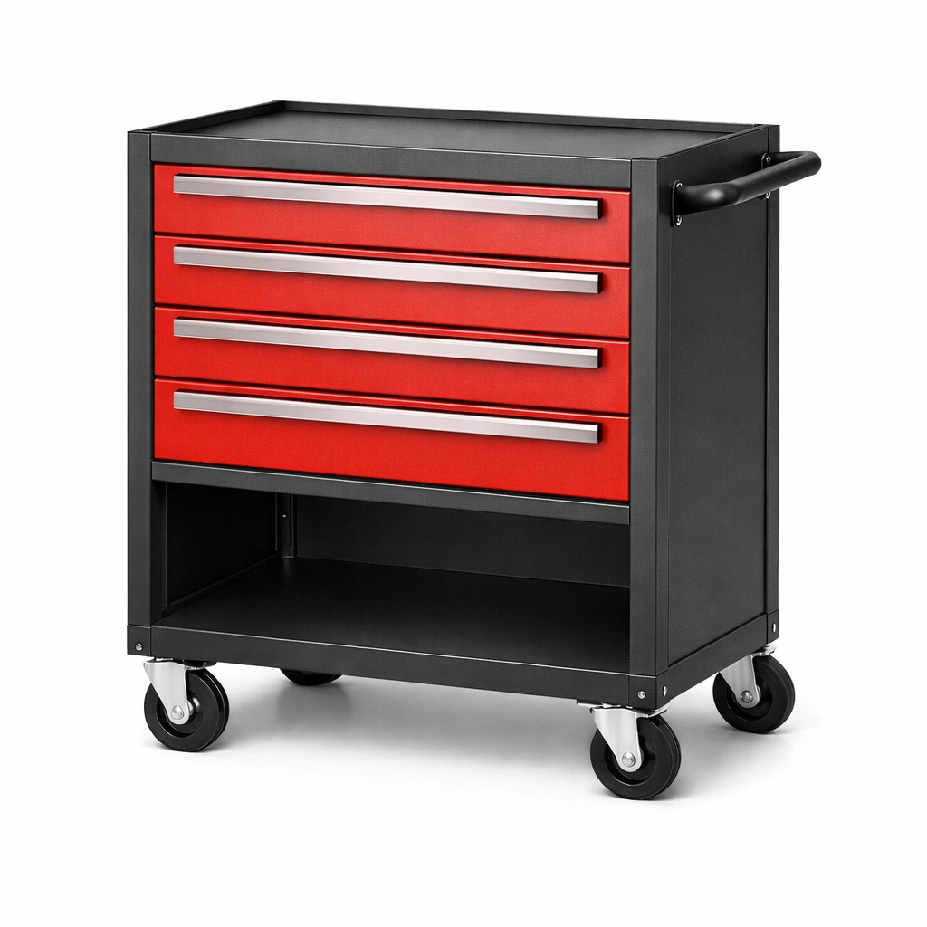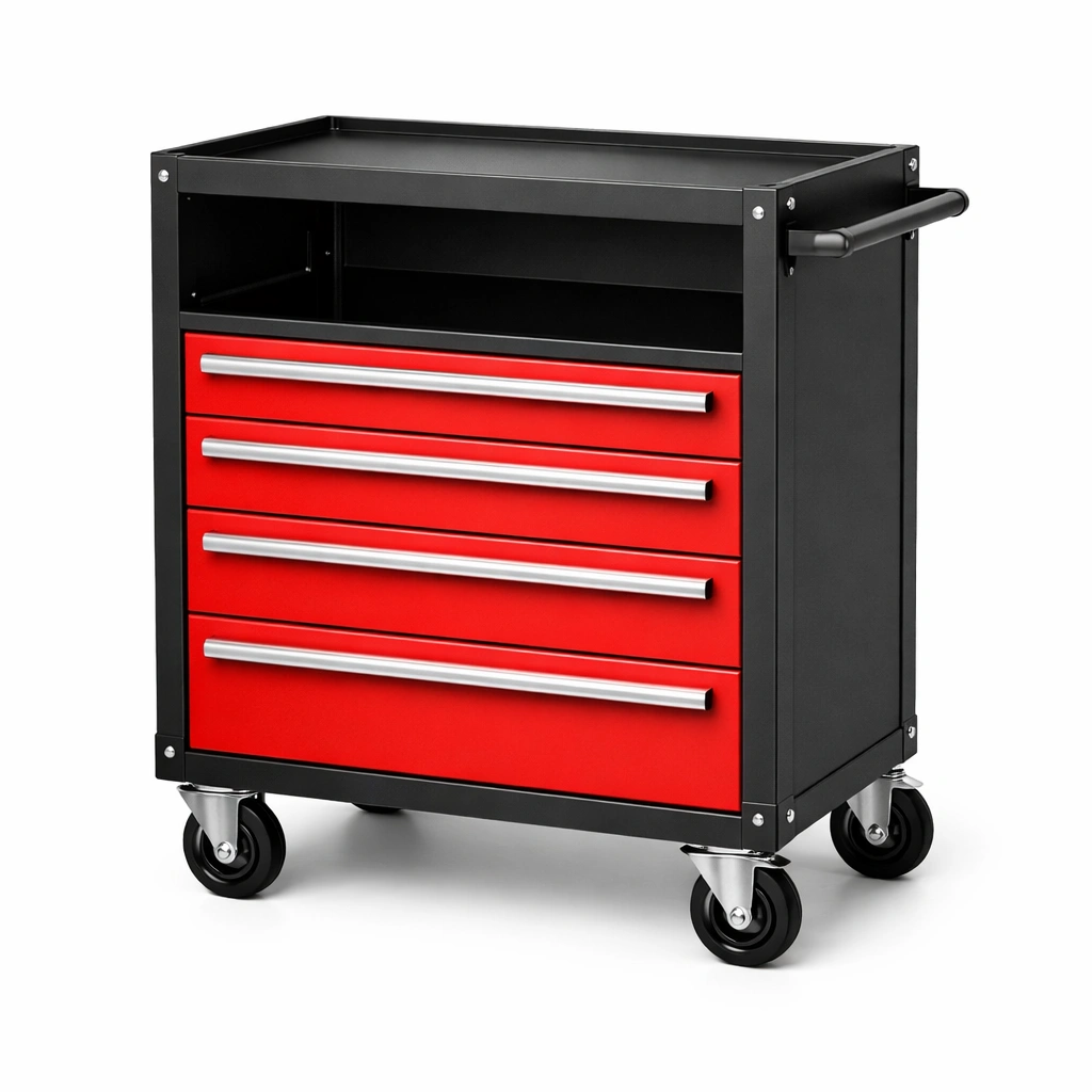Werkstattwagen stahl mit vier schubladen rot schwarz 70x35x75cm